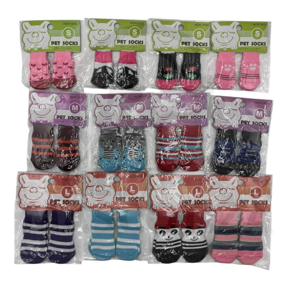Calcetines para mascotas con variedad de diseños y telas resistentes. Ofrecen protección, comodidad y ajuste seguro, ideales para cuidar las patas en diferentes superficies y condiciones climáticas.