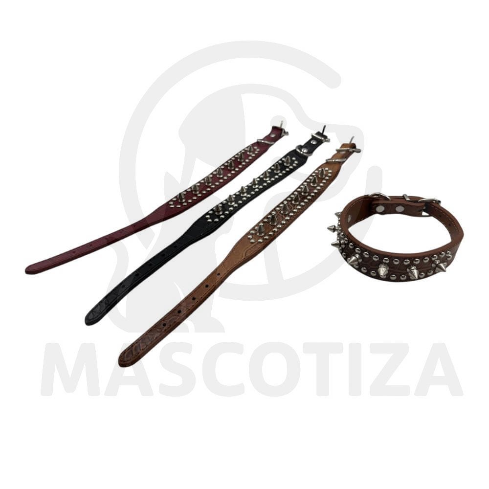 Este collar con puntas y tachas combina estilo y resistencia para tu perro. Diseñado para ofrecer un ajuste seguro y cómodo, es ideal para destacar la personalidad de tu mascota mientras garantiza durabilidad en cada paseo. Perfecto para dueños que buscan un accesorio único y confiable.