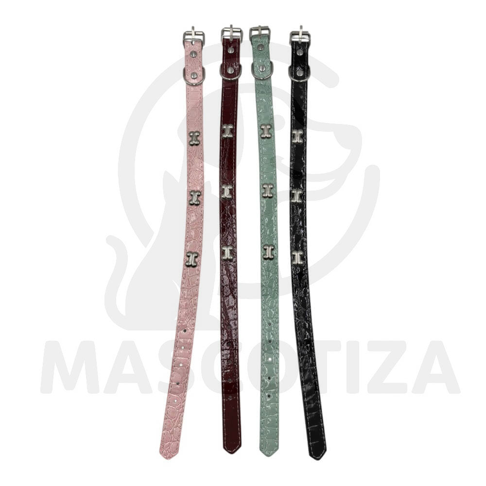 Este collar para perros combina un diseño elegante con detalles de huesos en estilo madera, ofreciendo un accesorio resistente y con un toque natural. Ideal para dueños que buscan un producto duradero y con un diseño distintivo para su mascota.