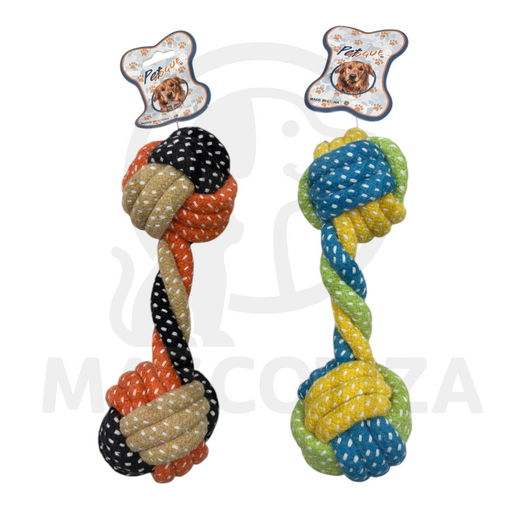 Este juguete mancuerna de soga es perfecto para mantener a tu perro activo y entretenido. Su diseño resistente y duradero soporta juegos intensos de morder y tirar, promoviendo el ejercicio físico y la salud dental. Ideal para fortalecer el vínculo con tu mascota mientras se divierte.
