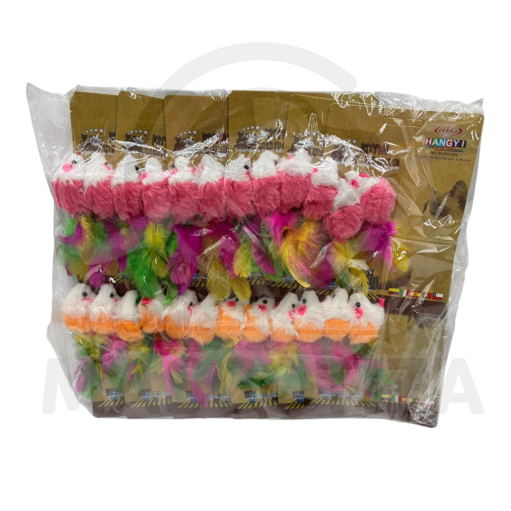 Este set incluye dos ratoncitos peludos, con textura suave y diseño detallado, ideales para juegos interactivos o decoración, en un formato práctico y atractivo. (precio por unidad)